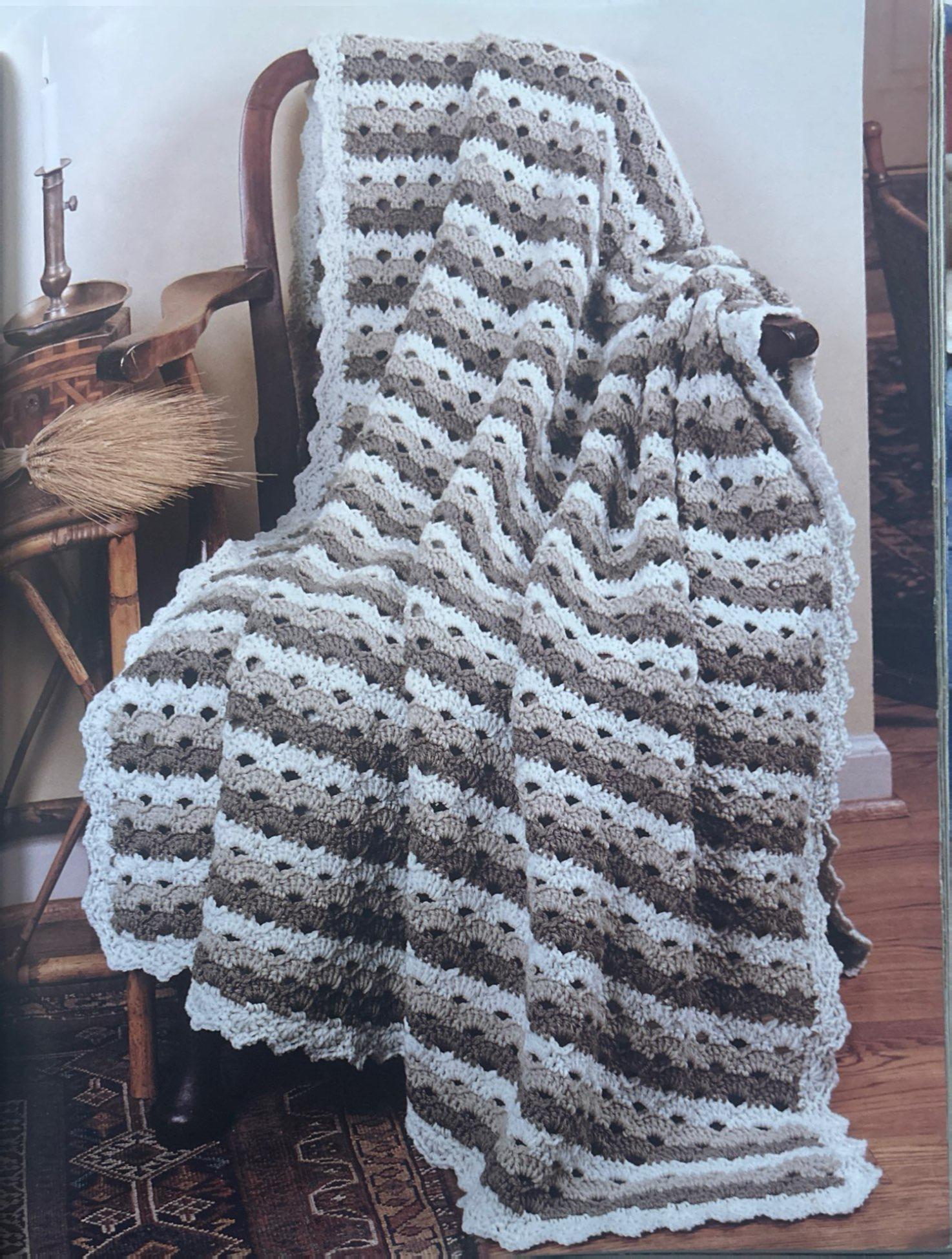 On a chilly autumn morning, nothing is more comforting than a warm slice of Mom's cinnamon toast. (Design by: Tammy Kreimeyer) Approximate finished size in medium yarn is 49 inches x 68 inches. Thinner yarns will result in a smaller fabric by approximately 1 to 2 inches per foot. |