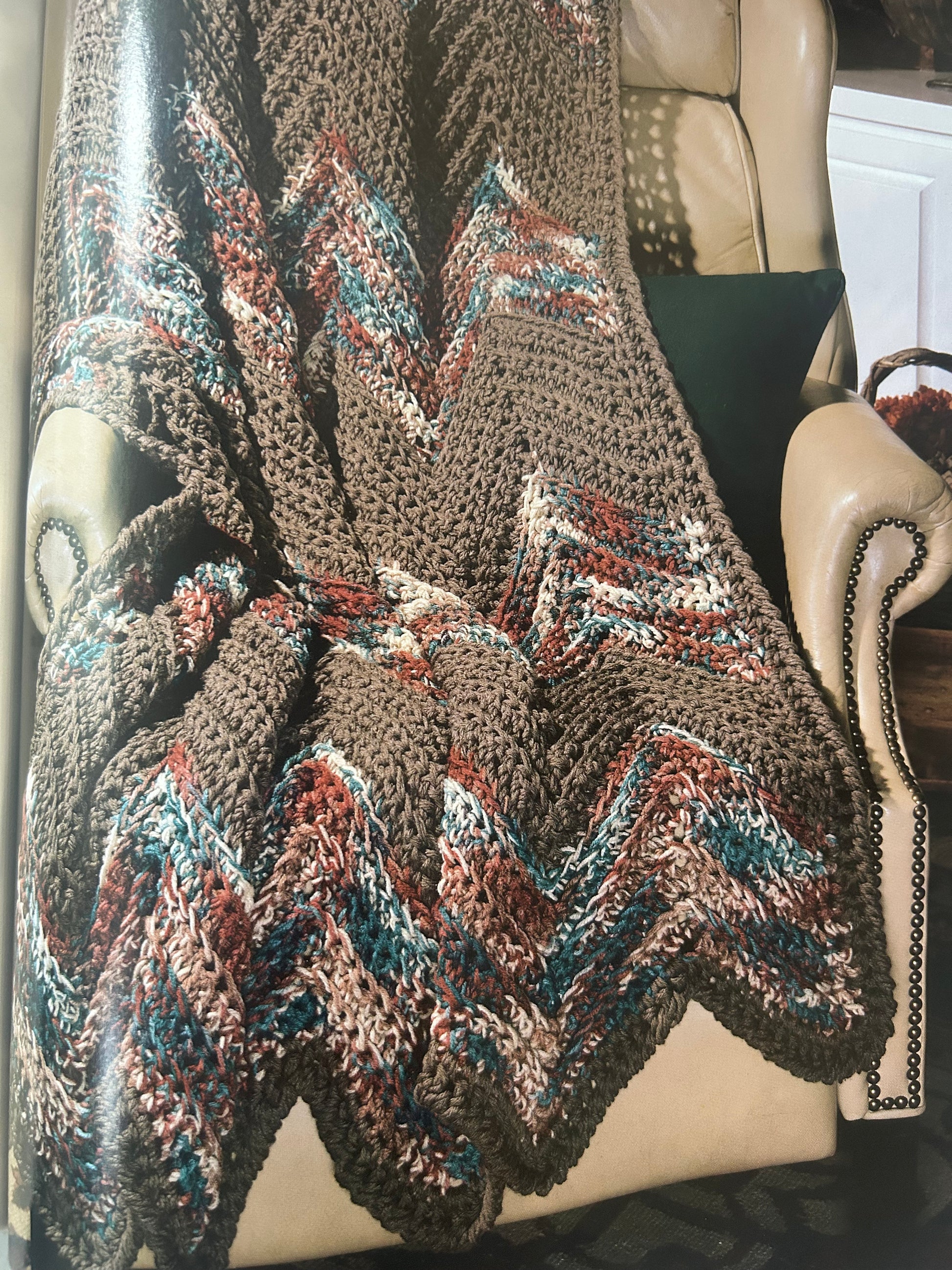 As pretty as the changing leaves rustling in a fall breeze, this double-thick afghan has captivating appeal. (Design by: Georgia A. Shaulis) This afghan is worked with two strands of yarn together for a bulkier fabric, but you may request single strand only. Approximate finished size in doubled-up, medium yarn is 49 inches x 63 inches. Thinner yarns will result in a smaller fabric by approximately 1 to 2 inches per foot. |