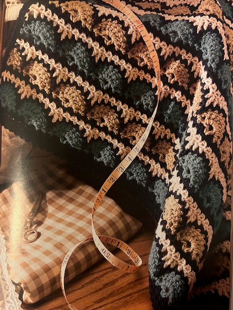 If you're a "fan" of unique afghan designs, this gorgeous throw is for you. Rows of fans, framed by stripes, are the focal point of this decorator wrap. (Design by: Anne Halliday) Approximate finished size in medium yarn is 45 inches x 65 inches. Thinner yarns will result in a smaller fabric by approximately 1 to 2 inches per foot. |