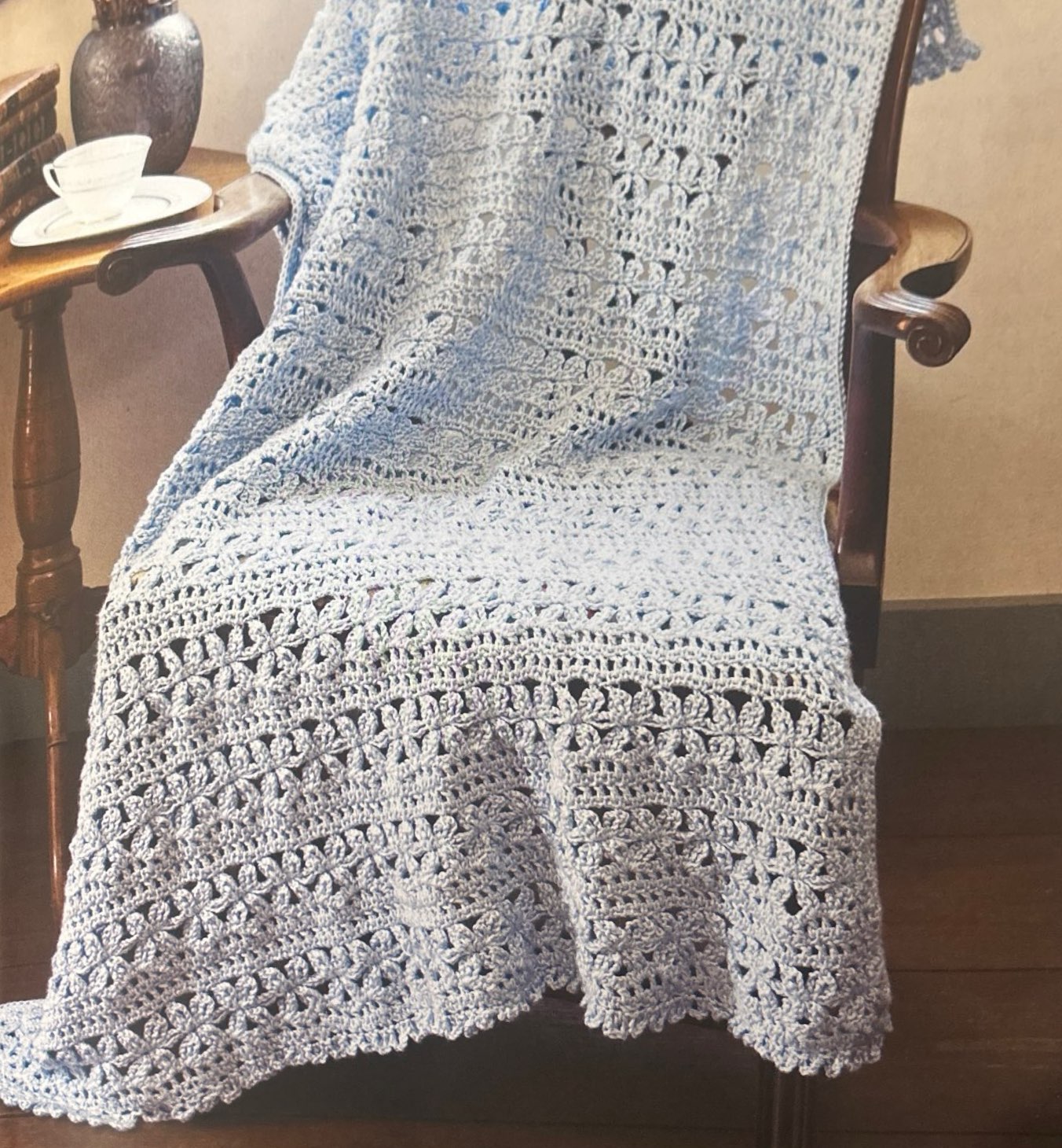 This lovely, flowery afghan would make a wonderful gift for Mother or your best girl friend. (Designed by: Jean Leinhauser) Approximate finished size in medium yarn is 48 inches x 56 inches. Thinner yarns will result in a smaller fabric by approximately 1 to 2 inches per foot. |