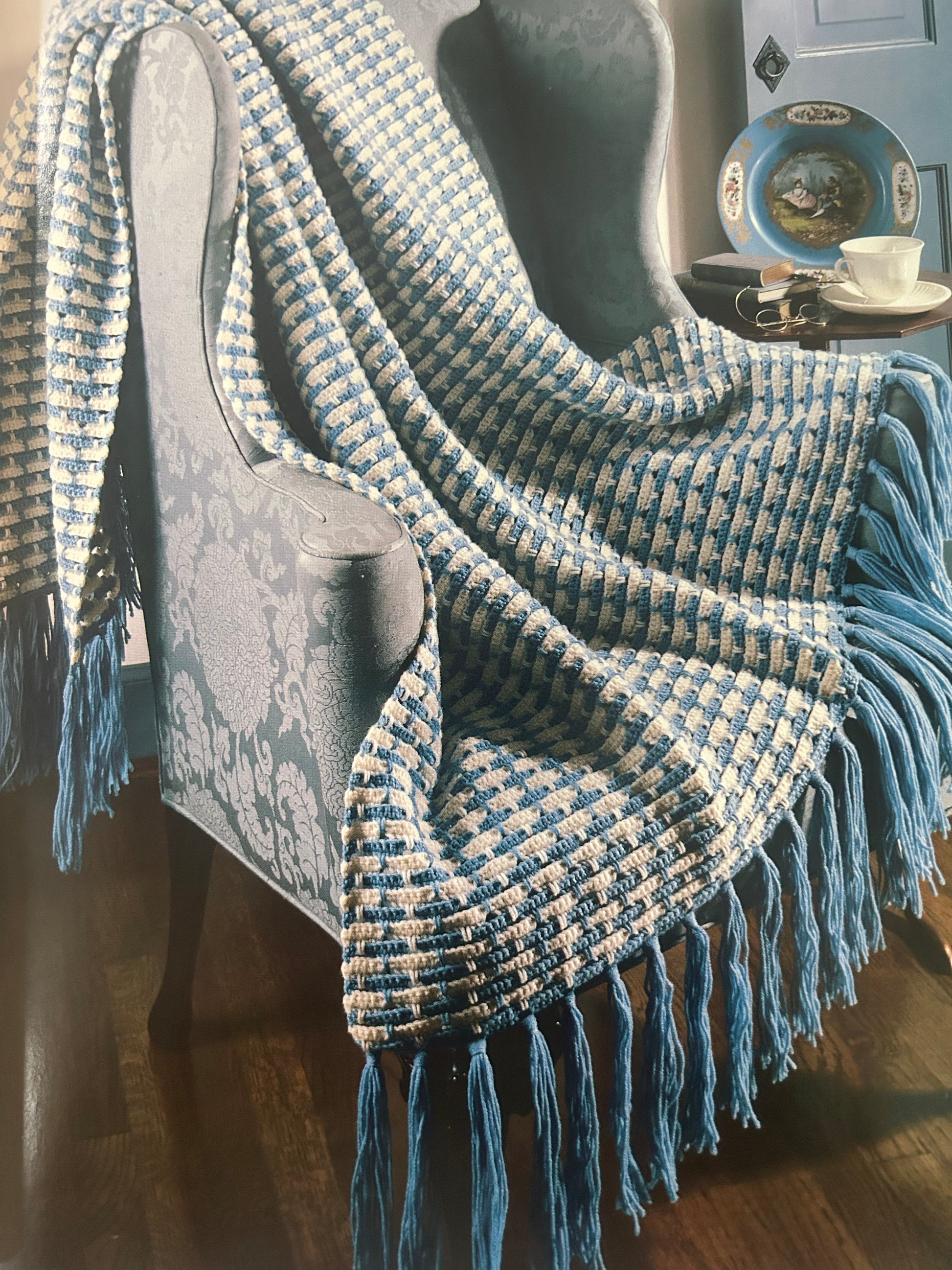 Spend the afternoon daydreaming while snuggled in the comfort of this plush throw. (Design by: Melissa Leapman) Approximate finished size in medium yarn is 48.5 inches x 68 inches. Thinner yarns will result in a smaller fabric by approximately 1 to 2 inches per foot. |