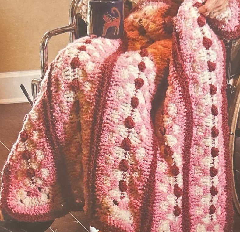 Soft and warm, this pretty lapghan is perfect for use in hospitals or nursing homes. (Design by: Cindy Carlson) This afghan is worked with two strands of yarn together for a bulkier fabric, but you may request single strand only. Approximate finished size in doubled-up, medium yarn is 35 inches x 35 inches. Thinner yarns will result in a smaller fabric by approximately 1 to 2 inches per foot. |