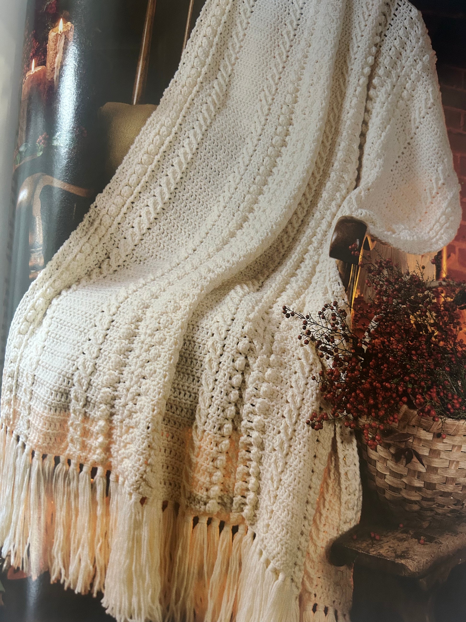 Fisherman afghans are traditionally known to provide unsurpassable warmth. You'll reel in the compliments with this catch of the day! (Design by: Barbara Shaffer) Approximate finished size in medium yarn is 47 inches x 63 inches. Thinner yarns will result in a smaller fabric by approximately 1 to 2 inches per foot. |